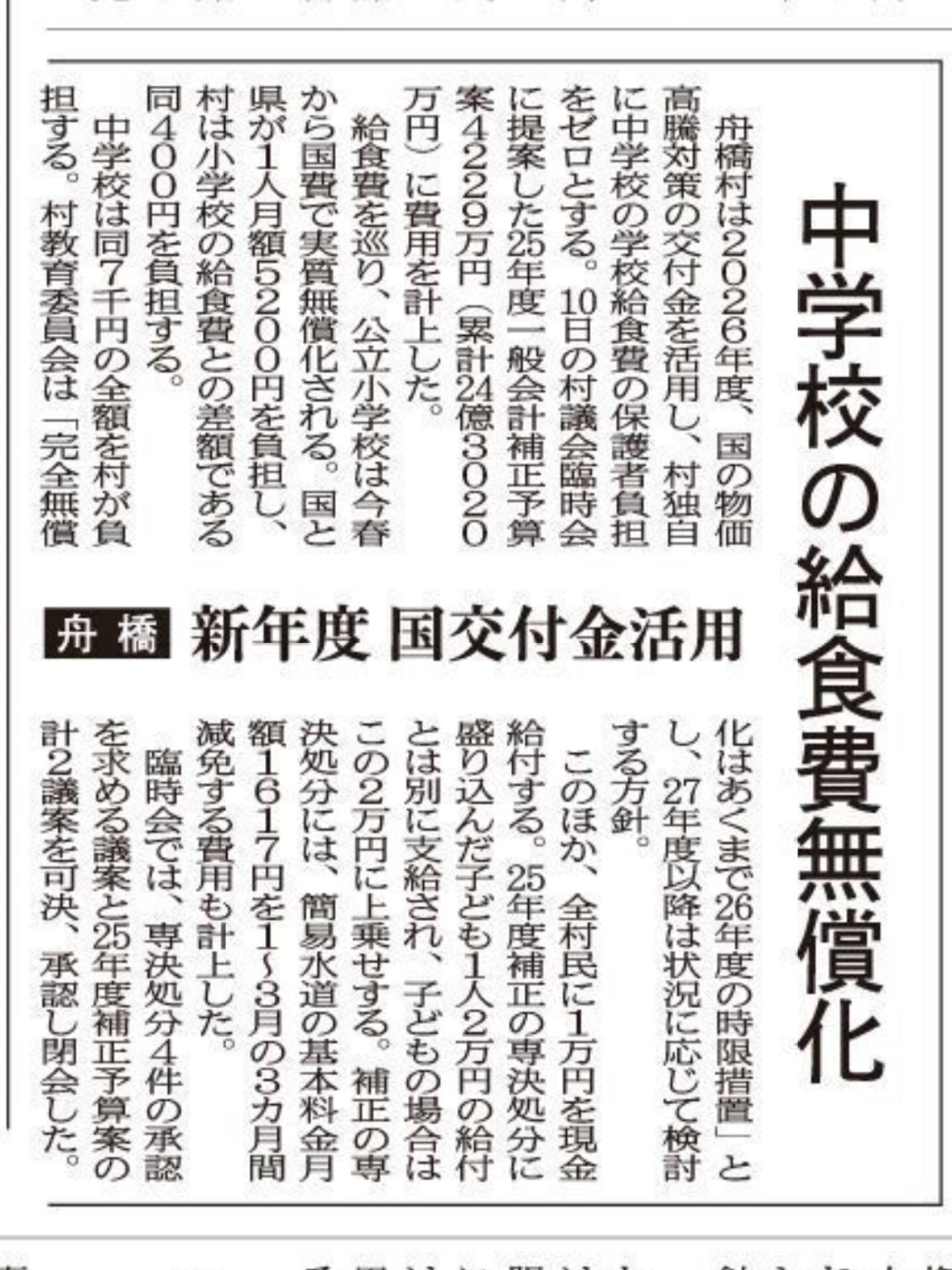所得制限や年齢制限を設けず、村民1人につき1万円の現金を給付することとした補正予算が可決されました。
