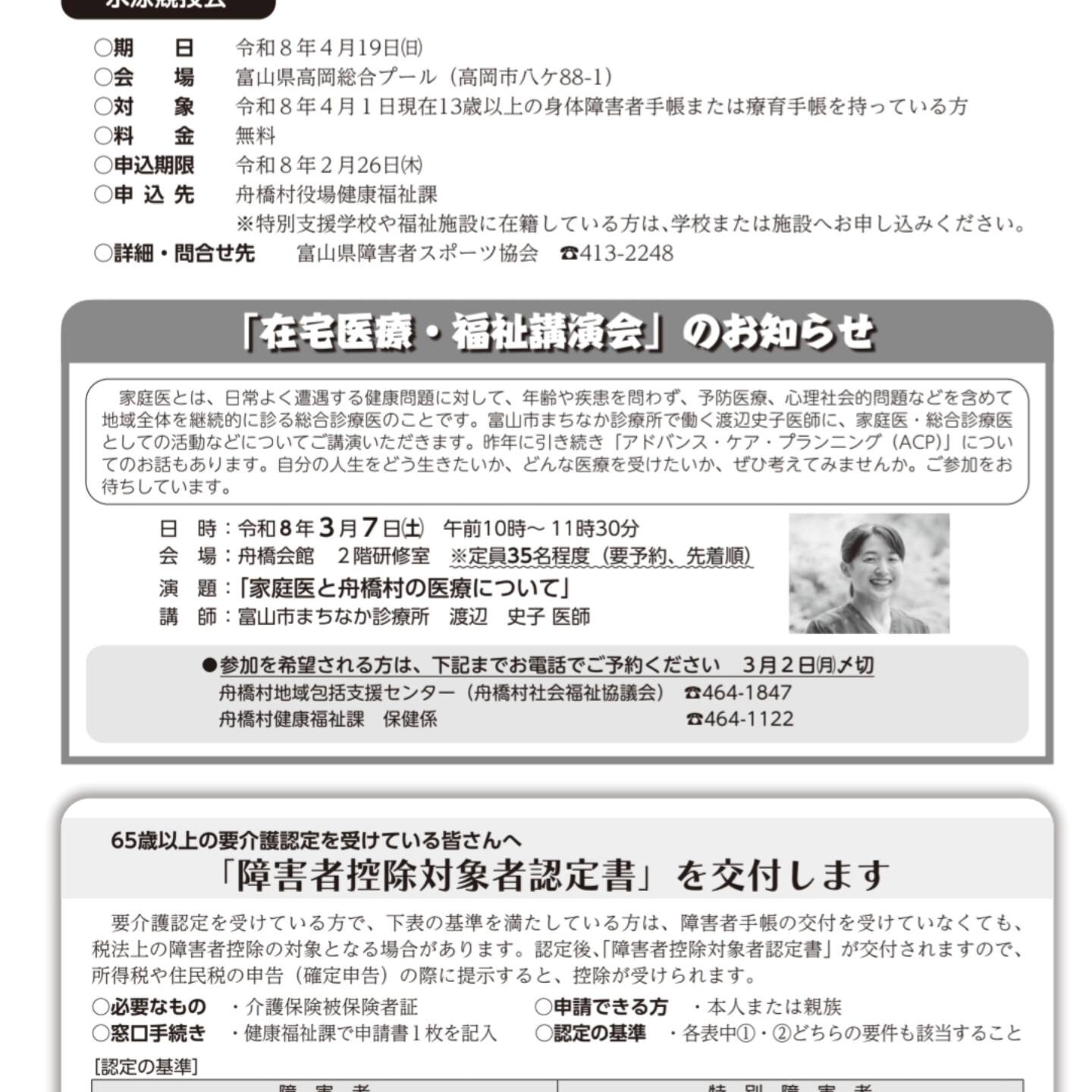 今週末の3月7日(土)10:00〜、舟橋会館において『在宅医療・福祉講演会』が開催されます。