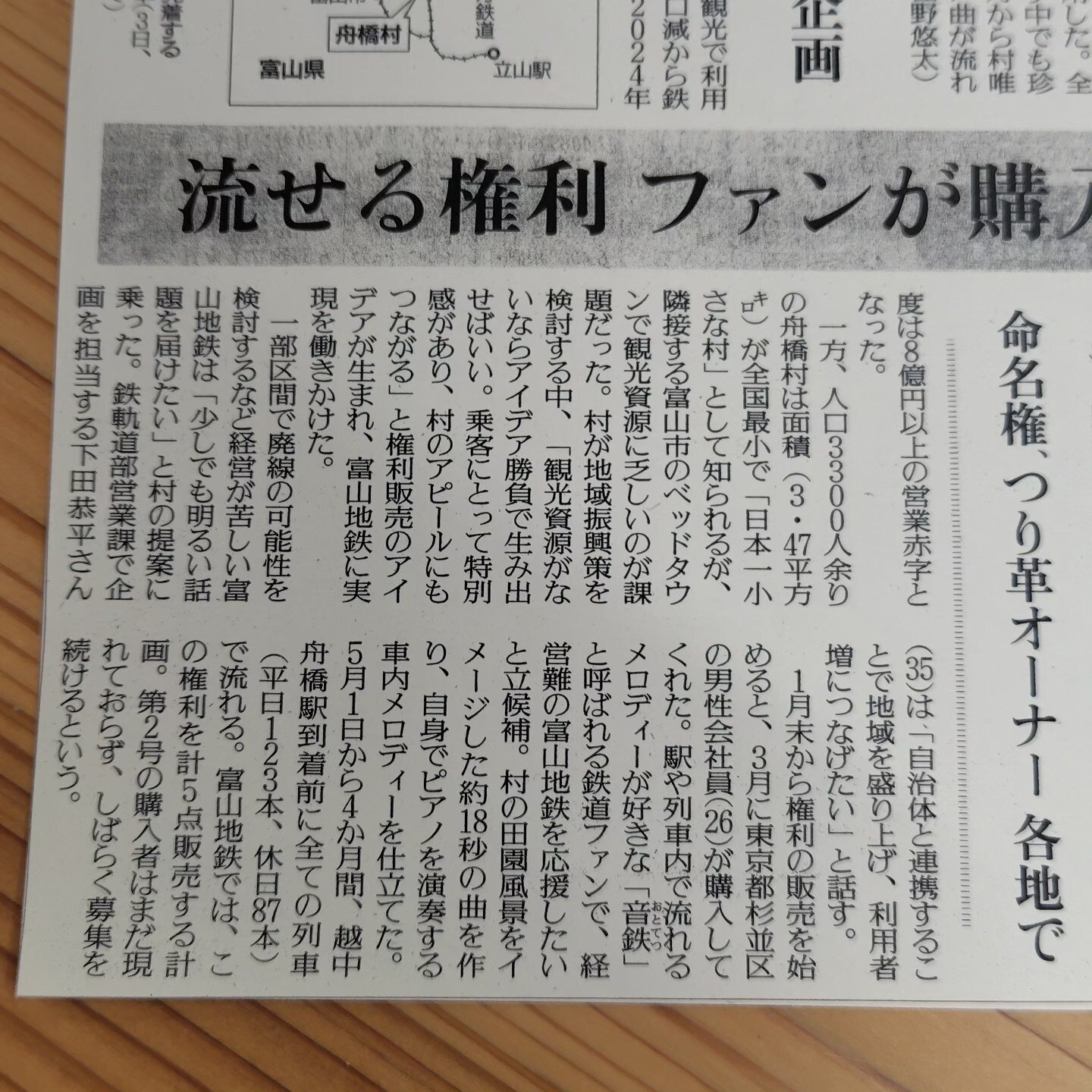 先般より舟橋村のNFTの取り組みの一環として、富山地方鉄道株式会社さんとタイアップのもと、自作の車内メロディを流せる権利を販売しました所、東京都在住の方に第一号ご購入頂きました。